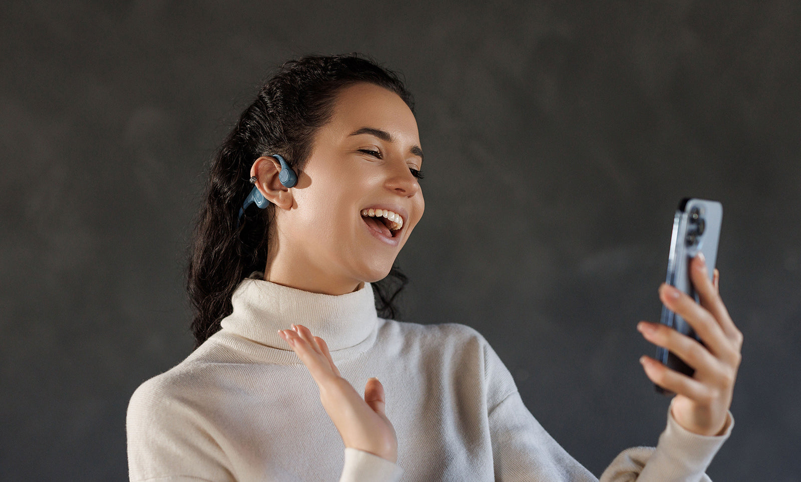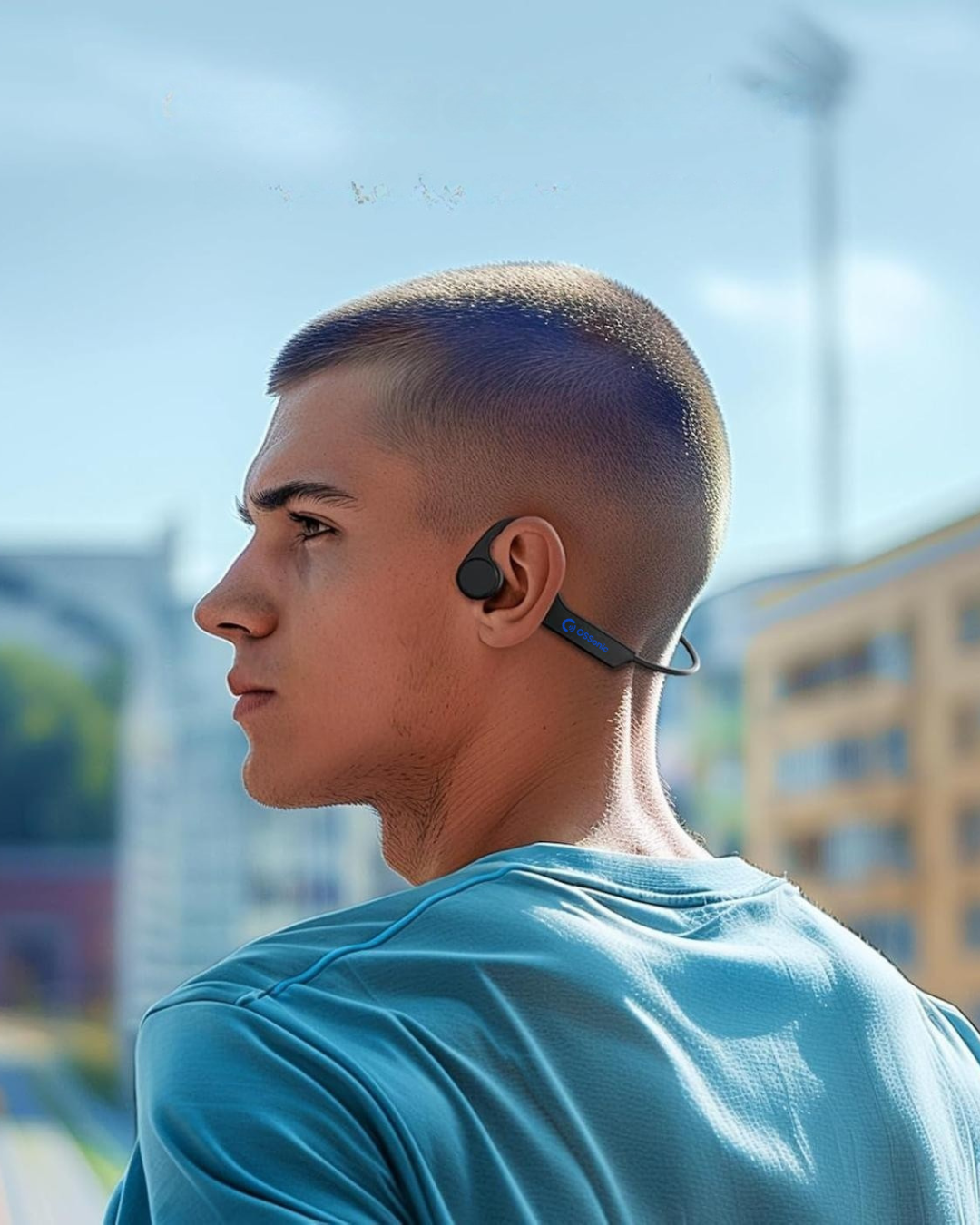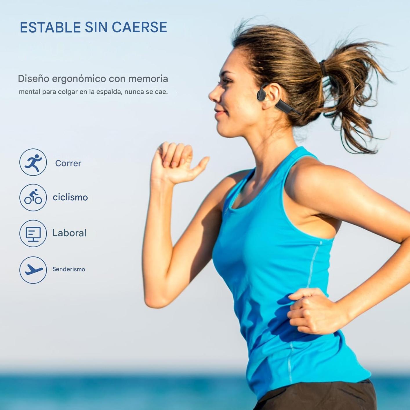Los audífonos de conducción ósea convierten el sonido en suaves vibraciones que llegan directo al oído interno, sin necesidad de pasar por el tímpano ni bloquear tus oídos.